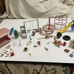 collection of vintage dollhouse Yard Play Toys, bike, animals, gardening items. Selling as lot$80Milwaukee, WI