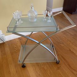 Frosted glass rolling bar cart$85Mequon, WI