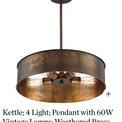Metal Hanging Kettle Chandelier 4 Light Pendant Weathered Brass Finish, Like New$100Milwaukee, WI