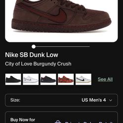 City Of Love Burgundy Dunks $90Milwaukee, WI