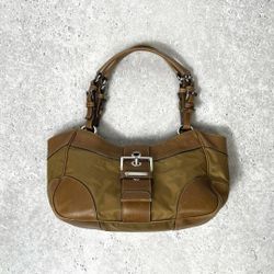 𝐏𝐫𝐚𝐝𝐚 Milano Nylon Metal Handle Tote Bag Brown$218Milwaukee, WI