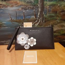 Micheal Kors Large Leather Black Zip Wristlet Clutch w/Flower Design New with Tag $40$40Milwaukee, WI