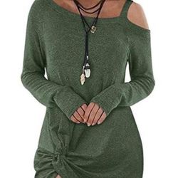 Berryou Women's Casual Long Sleeve Off Shoulder Front Knot Twist Tie Solid Dress$30Lakewood, WI