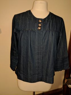 IZOD Jeans size medium petite button front denim blazer/jacket w/front pockets, a slit in the back, & buttons on the sleeve ends and is in excellent$16Saint Albans, WV
