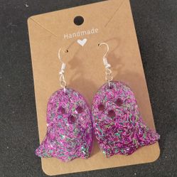 Cute purple ghost Halloween dangle earrings with iridescent glitter silver hooks new$9Princeton, WV