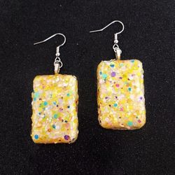 Yellow dangle earrings with multicolor chunky glitter and crushed shell resin $10Princeton, WV