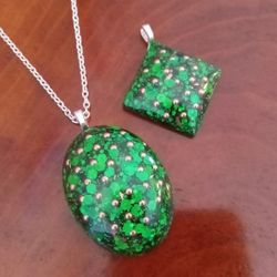 Green And Gold Orgonite Orgone 20" Necklace With Extra Pendant $13Princeton, WV