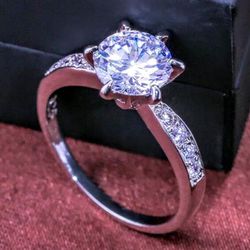BRAND NEW IN PACKAGE LADIES PRONGED ROUND CUT WHITE SAPPHIRE & WHITE CRYSTALS 925 STERLING SILVER ENGAGEMENT RING SIZE 8 $59Charleston, WV