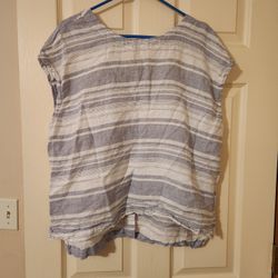 Cynthia Rowley Blue & White Striped Linen Top Button Back Short Sleeve Sz XL $15White Hall, WV