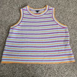 Torrid Size 3 Cropped Open Stitch Striped Tank Fushia Blue Gold Crochet Sweater$18White Hall, WV