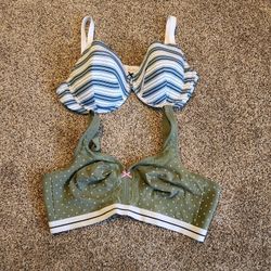 Lot Of 2 Cacique Bras Size 44D Green Polka Dot Blue White Striped Adjustable $20White Hall, WV