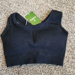 NWT Halara Black Ribbed Sports Bra Tie Up Back Padded Size M Yoga Workout $15White Hall, WV