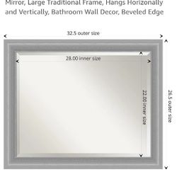Open Box .Amanti Art Silver Bathroom Mirror for Over Sink, 27x33 Peak Polished Nickel Narrow Rectangle Vanity Mirror,$154 Retail $35Weirton, WV