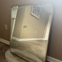 Open Box .Amanti Art Silver Bathroom Mirror for Over Sink, 27x33 Peak Polished Nickel Narrow Rectangle Vanity Mirror,$154 Retail $35Weirton, WV