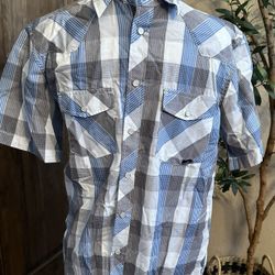 Coastal men's blue and white plaid western short sleeve shirt with pearl snaps M$8Monessen, PA