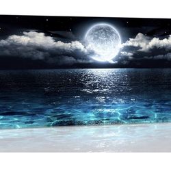 Brand New Moon Sea Ocean Landscape Picture Canvas Wall Art Print Paintings Modern Artwork for Living Room Wall Decor and Home Décor Framed Ready to Ha$89Davistown, PA
