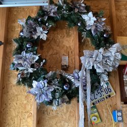 Large And Lovely 40” Pine Wreath Decorated In Blues And Silvers$65California, PA