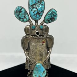 NAVAJO JOHN LARSON STERLING SILVER TURQUOISE KACHINA DOLL BOLO TIE$400Loveland, CO