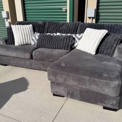 2-piece left-arm-facing sofa chaise in gunmetal or dark gray chenille fabric with pillows.$550Fort Collins, CO