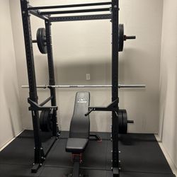 Titan Fitness Squat Rack, Adjustable Bench, Barbell, And Plates$600Windsor, CO