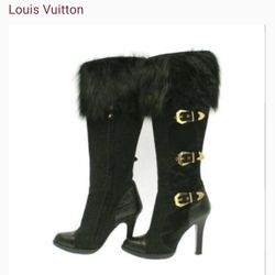 Knee High Black High Heeled Boots With Fur$40Mesa, AZ