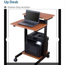 Stand Up Desk Store Rolling Adjustable Height Two Tier Standing Desk Computer Workstation (Black Frame/Teak Top, 24" Wide$80Fresno, CA