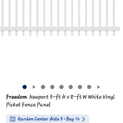White Vinal Picket Fence Pannel$250Visalia, CA