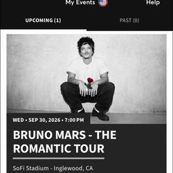 Bruno Mars Tickets$475Fresno, CA