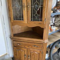 Oak Corner Curio Display Cabinet With built In Light Fixture.$125Fresno, CA
