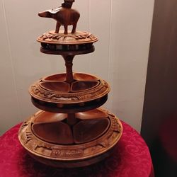 Beautiful Vintage 3-Tier Carved Wooden Serving Dish Lazy Susan, Located In Reedley $100Reedley, CA