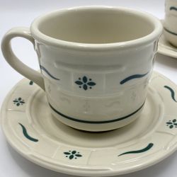 VTG SET OF 2 LONGABERGER WOVEN TRADITIONS IVY GREEN CUPS & SAUCERS PERFECT CONDITION $18Visalia, CA
