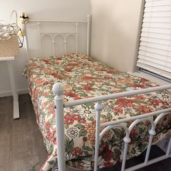 PLATAFORMA DE METAL CON CABECERA DE TELA GRIS Y CON COLCHÓN MEMORY FOAM USADA BUENA CONDICIÓN $255Fresno, CA