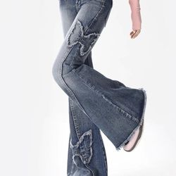 Women Bell Bottom Denim Pants Butterfly Embroidery High Waisted Classic Flared size 31 used like new$15Visalia, CA