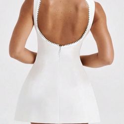 Women's Sexy Halter Round Neck Backless and Sleeveless Mini Dress Casual Beach Party Dress White mini dress with pearl detailing #party #eveningwear #$15Visalia, CA