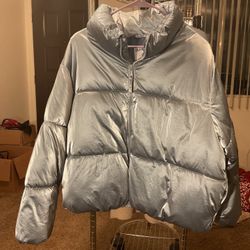 Old Navy XL Silver Metallic Puffer Jacket Women’s Water-Resistant$15Fresno, CA