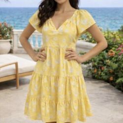 Banana Republic dress size large Yellow floral mini dress with short sleeves, V-neck and tiered skirt #cottagecore used like new $8Visalia, CA