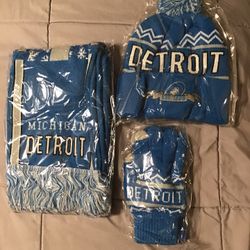 Vintage Classic Detroit Skull Cap Beanie Hat with Warm Gloves and Extended Scarf Cuffed Winter Hat Knit $20Clovis, CA