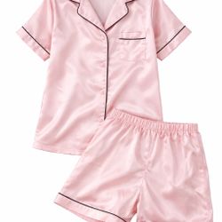 Girls Satin Pajama Set – Pink Short Sleeve & Shorts (Size 10–12)$12Fresno, CA