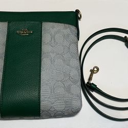 Coach Signature Jacquard Kitt Crossbody Green and Blue Embroidered with Bright Green Pebble Leather$35Visalia, CA