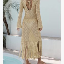 Fisoew Women's Swimsuit Crochet Cover Ups Summer Long Sleeve Tie Back Fringe Hem Beach Vacation Coverup Maxi Dress size small new $10Visalia, CA