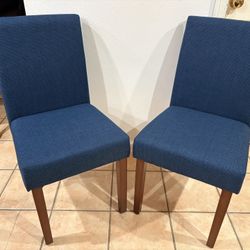 Set of 2, Modern Chairs with Back, Fabric Kitchen Side Chairs with Wood Legs Blue NEW $85Visalia, CA