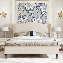 Queen White Linen Tufted Bed + memory Foam Mattress$500Clovis, CA
