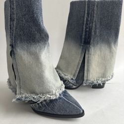 Blue Jean Boots Women’s Size 6 Heels Distressed Denim Wild Fable Calista New$25Visalia, CA