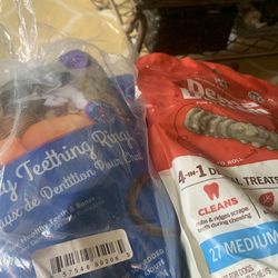 Bundle of 3 bags of 6 in each bag of teething rings and 1 bag of 27 dental treats for dogs$20Clovis, CA