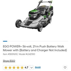 EGO POWER+ 56-volt, 21-in Push Battery Walk Mower with (Battery and Charger Not Included)$200Fresno, CA