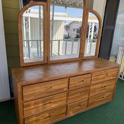 Solid Oak 9-Drawer Dresser w/ Mirror – Heavy Duty, Great Condition$300Fresno, CA