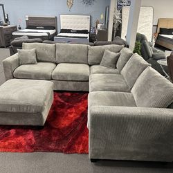 Gray Corduroy Sectional Sofa & Ottoman $899Fresno, CA