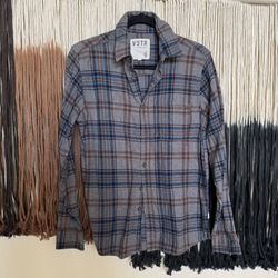 Grey and blue plaid button down flannel shirt; perfect condition$10Fowler, CA