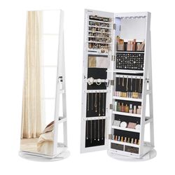 ONGMICS 6 LEDs Lockable Mirror Jewelry Cabinet, 360° Swivel Jewelry Organizer Armoire Standing, Frameless Full-Length Mirror, 3 Storage Shelves, White$100Visalia, CA