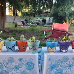 Succulents and cactus in hand painted pots$10Fresno, CA